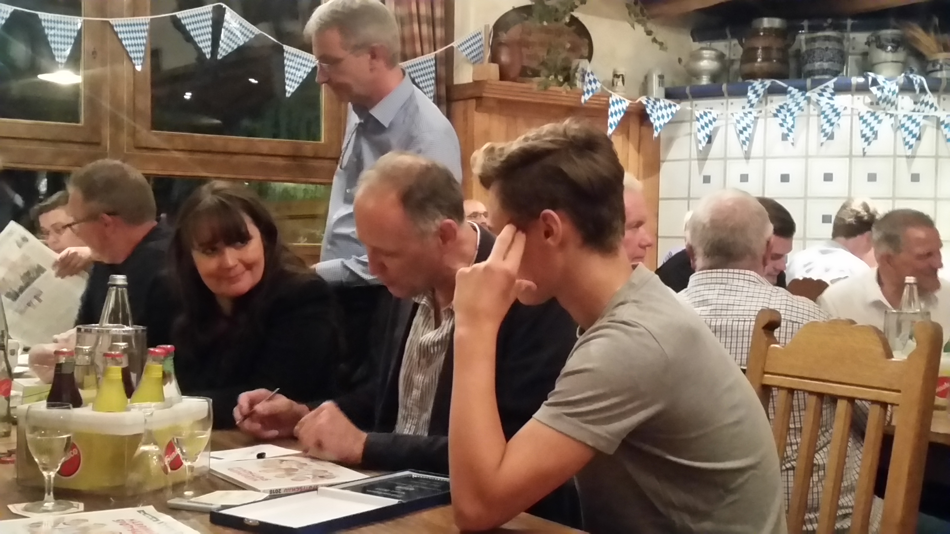 Eine persönliche Widmung erhielt Finn im Anschluss noch von Sportkarikaturist Christoph Härringer. Der Künstler ist regelmäßig mit seiner Härringers Spottschau“ im Sportteil der NRZ zu sehen ist.
