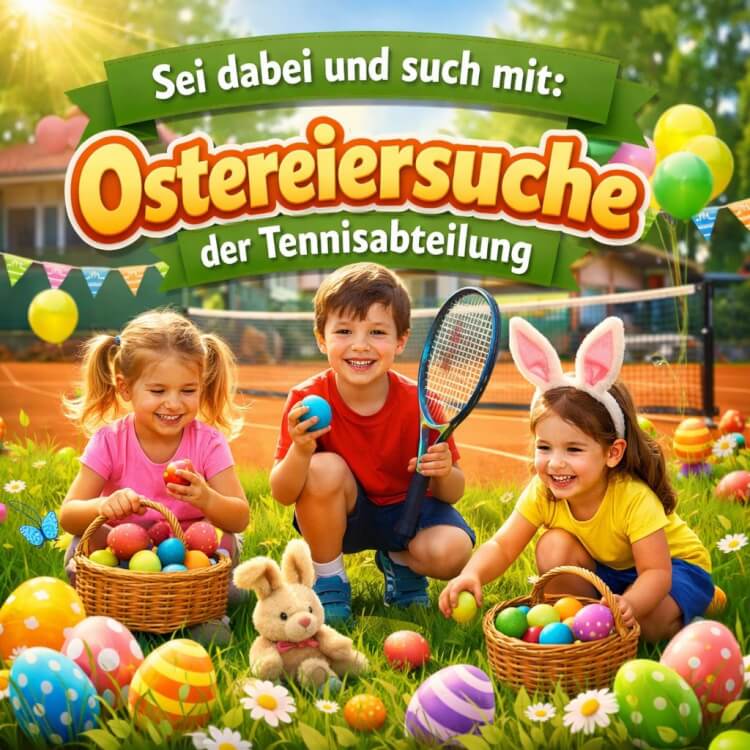 Am Samstag, 04.04.2026 um 13:00 Uhr, verwandelt sich das Stadion Hiesfeld, Am Freibad 14, 46539 Dinslaken-Hiesfeld, in einen fröhlichen Treffpunkt für unsere kleinen Tennis-Kids. Gemeinsam möchten wir einen wunderschönen Oster-Nachmittag verbringen, bei dem natürlich vor allem eines im Mittelpunkt steht: das Suchen, Finden und Staunen.